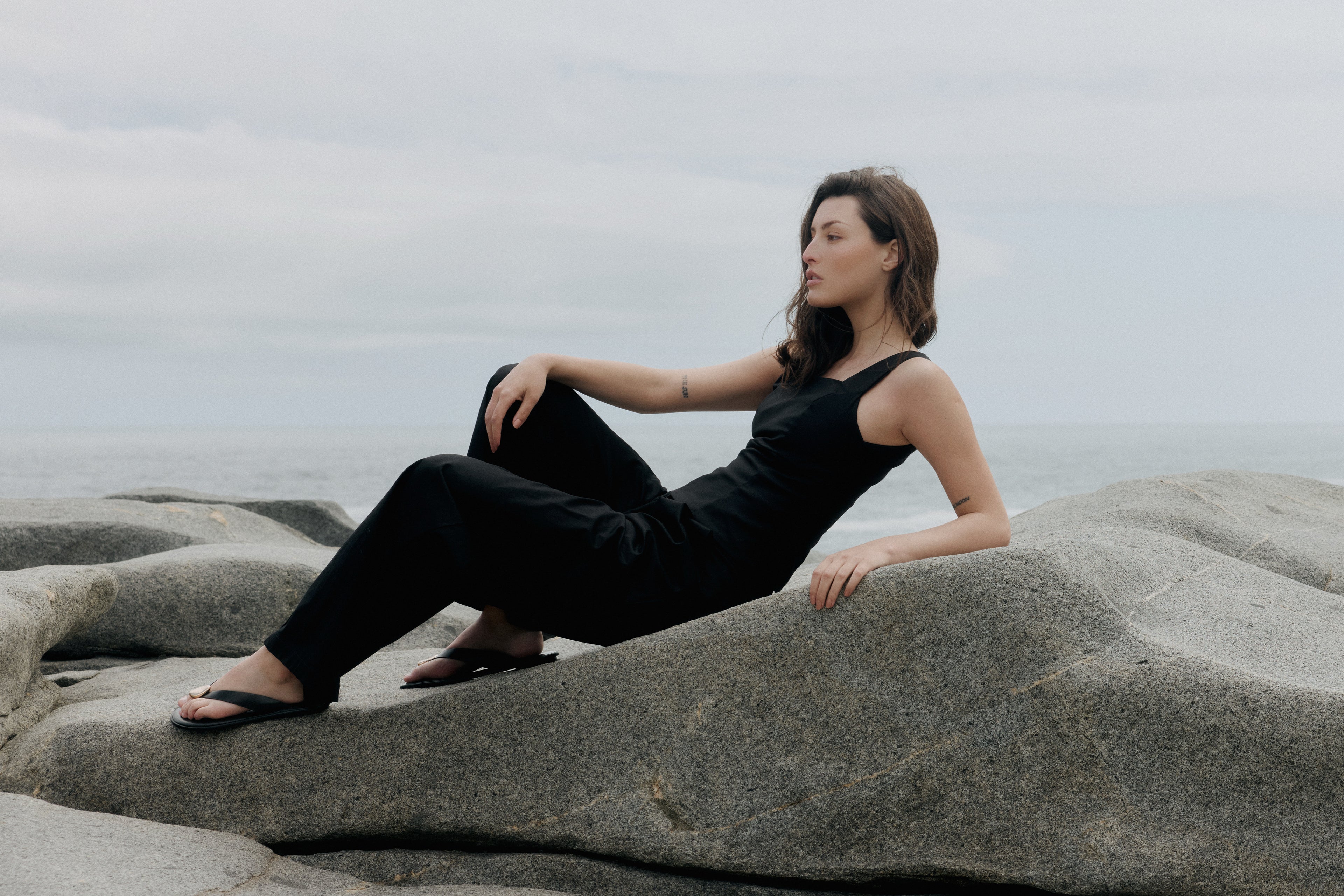 Esta colección es un viaje sensorial por la orilla: el sol dorando la piel, la sal marcando el cuerpo, una fruta jugosa en la mano. Es una elegancia que no necesita alzar la voz, pero se impone en cada costura, en cada botón, en cada elección textil.
