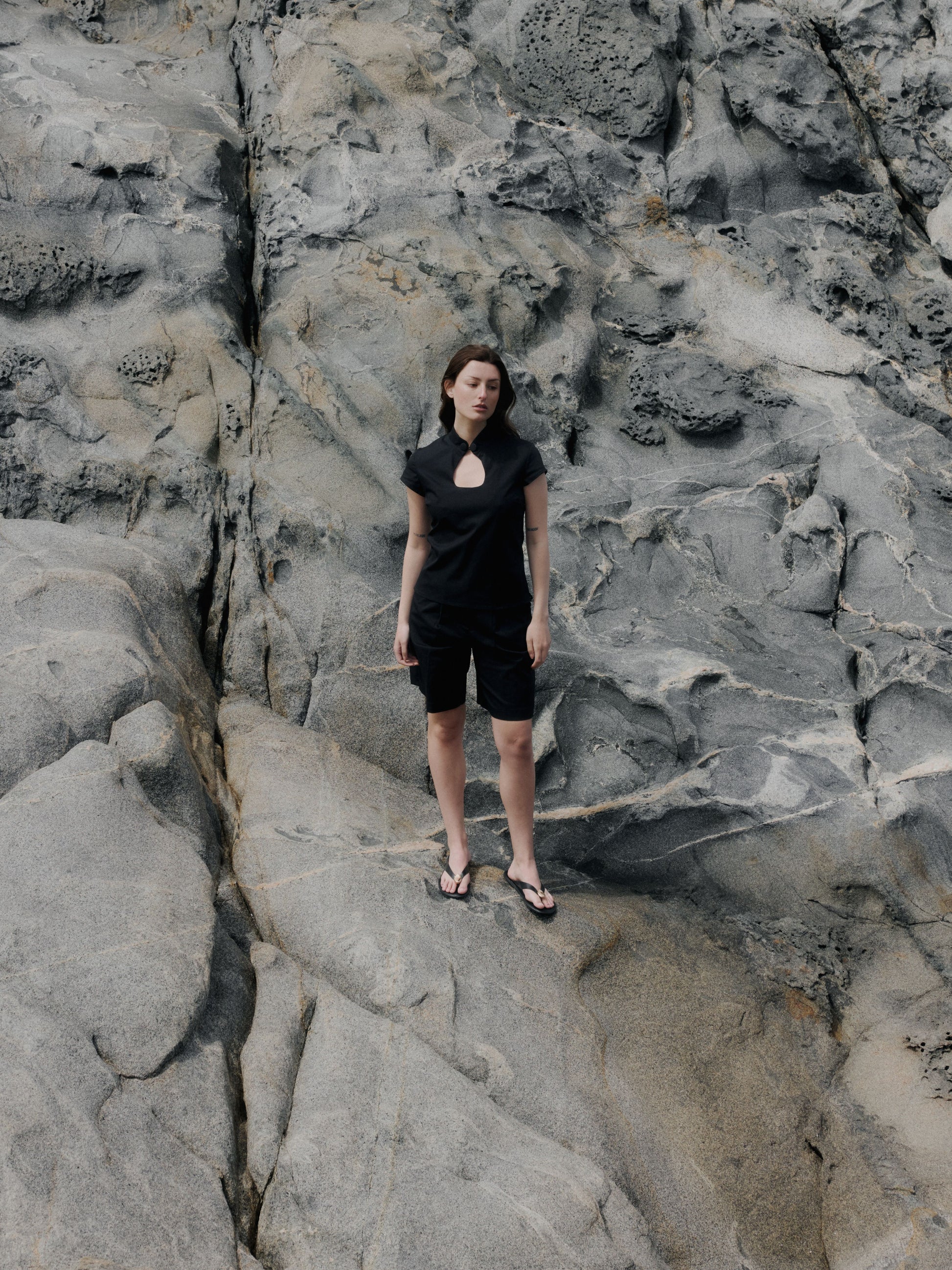 Estas bermudas combinan estructura y frescura en una silueta refinada, pensada para los días cálidos. De corte preciso y proporciones cuidadas, su largo ligeramente sobre la rodilla aporta un aire actual sin perder elegancia. La pretina centrada y el botón forrado en la parte frontal elevan el diseño con un detalle visual sutil, mientras que las pinzas frontales suavizan la caída, favoreciendo la silueta sin ajustar. El resultado es una prenda versátil, cómoda y pulida, ideal para transitar entre lo urbano y lo veraniego con naturalidad. Diseñadas para quienes entienden que el verdadero lujo está en el corte, el gesto y la intención.