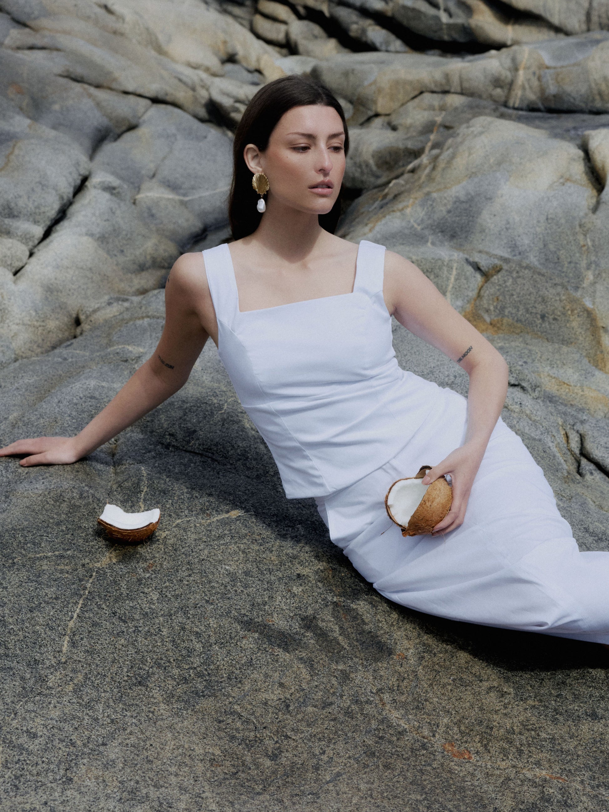 Esta prenda redefine la sensualidad desde la sobriedad. De frente, su diseño limpio y estructurado evoca la elegancia contenida de la sastrería clásica; de espaldas, un lazo protagonista revela una actitud libre, segura y consciente del cuerpo que habita. Equilibra intención y fluidez: está confeccionado en una tela firme pero ligera que se ajusta al busto sin comprimir. Bajo el lazo, un broche oculto asegura el calce perfecto, reforzando la estructura sin interferir con la estética. Una prenda pensada para esos días donde lo natural y lo sofisticado conviven, donde la elegancia no necesita ser evidente, pero deja huella en cada línea, cada nudo, cada gesto.